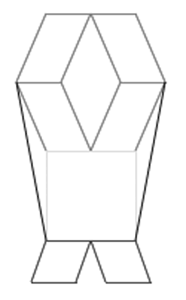The arms should be attached at the top right and top left of the square that makes up the body. The tops of the arms should be parallel to the top line of the square.