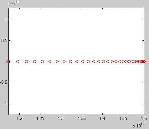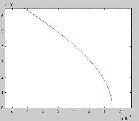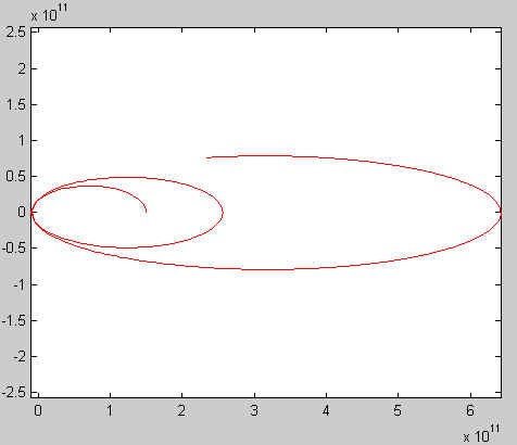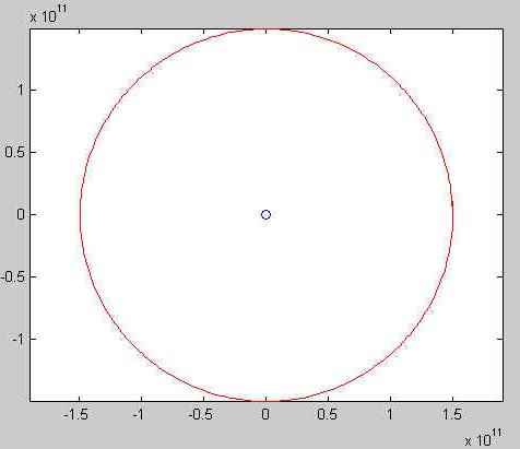 [x, y] = celestial(K, dt, R0, speed(i), steps(i), 100);