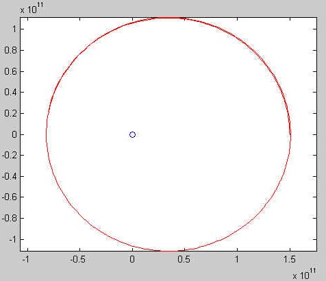 the elliptic orbit. We have used plot(0, 0, 'bo') to plot the