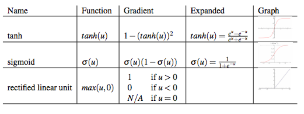 In the "Old Days", sigmoid and tanh were most popular. Nowadays, Rectified Linear Unit (Relu) are pretty fashionable.