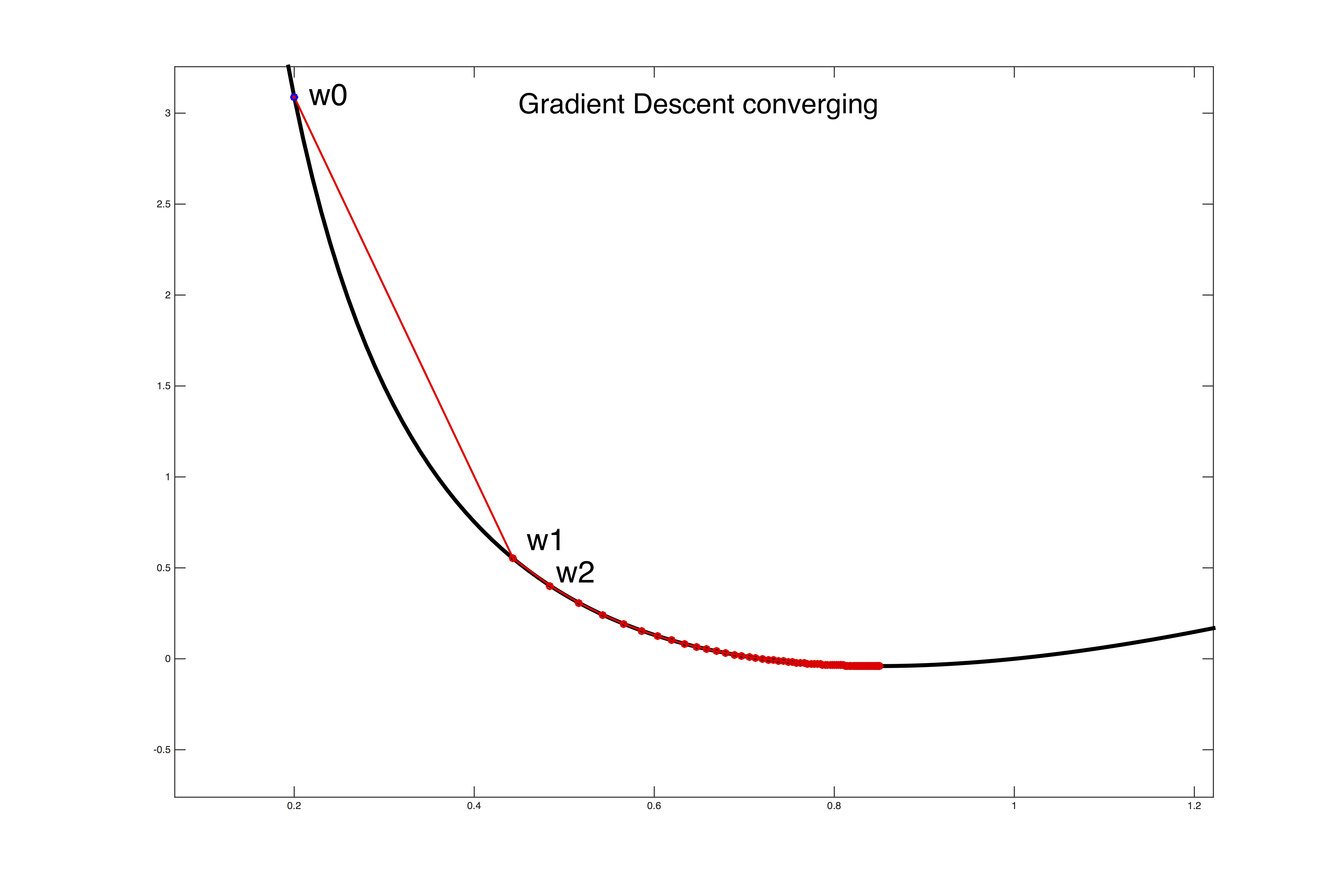 We want to minimize a convex, continuous and differentiable loss function \(\ell(w)\). In this section we discuss two of the most popular "hill-climbing" algorithms, gradient descent and Newton's method.