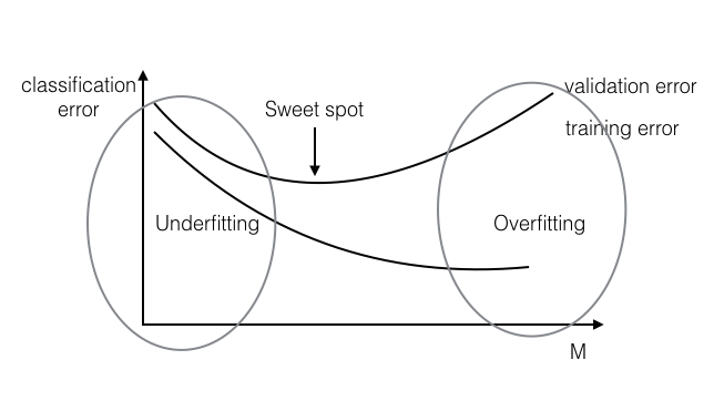 Underfitting: The classifier learned on the training set is not expressive enough (i.e. too simple) to even account for the data provided. In this case, both the training error and the test error will be high, as the classifier does not account for relevant information present in the training set.